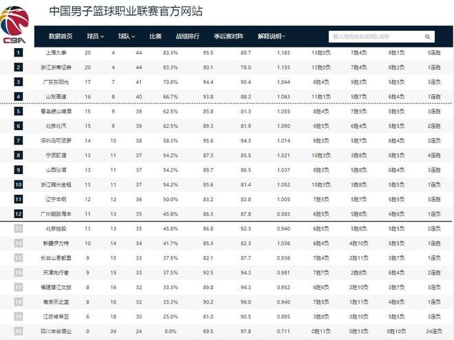 CBA排名更新!广东三连败北京大胜,上海荣登榜首,山东位居四强
